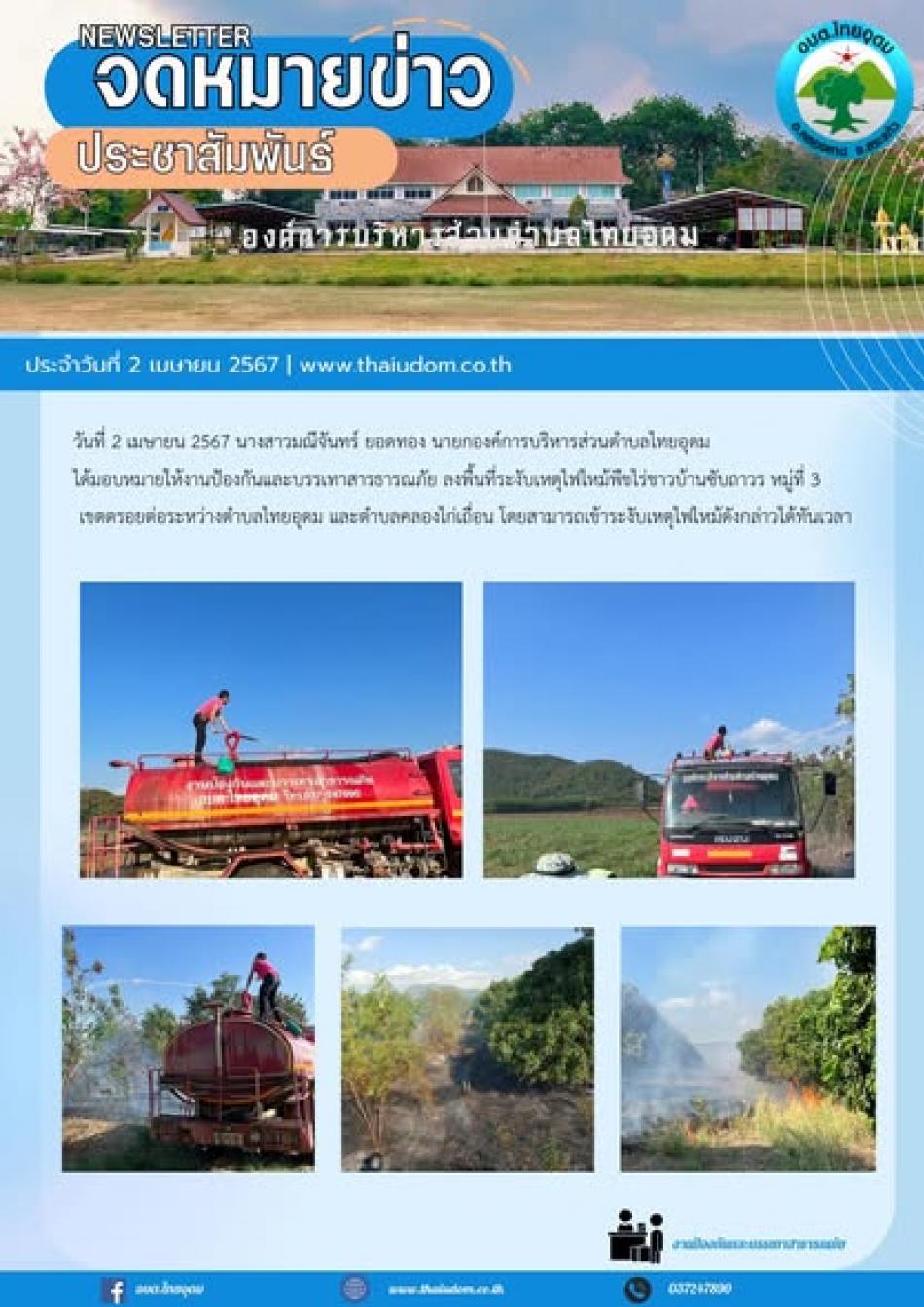 งานป้องกันและบรรเทาสารธารณภัย ลงพื้นที่ระงับเหตุไฟไหม้พืชไร่ชาวบ้านซับถาวร หมู่ที่ 3 เขตรอยต่อระหว่างตำบลไทยอุดม และตำบลคลองไก่เถื่อน [2 เมษายน 2567]