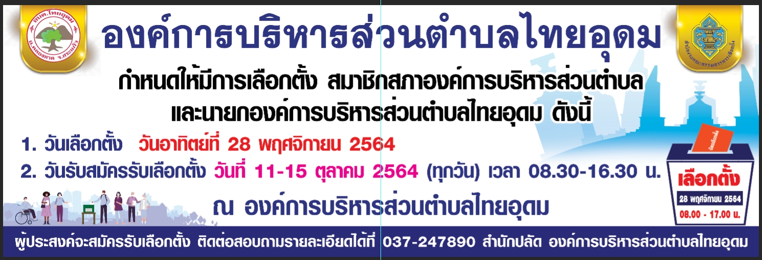 ประชาสัมพันธ์การรับสมัครเลือกตั้งสมาชิกสภาองค์การบริหารส่วนตำบลไทยอุดม