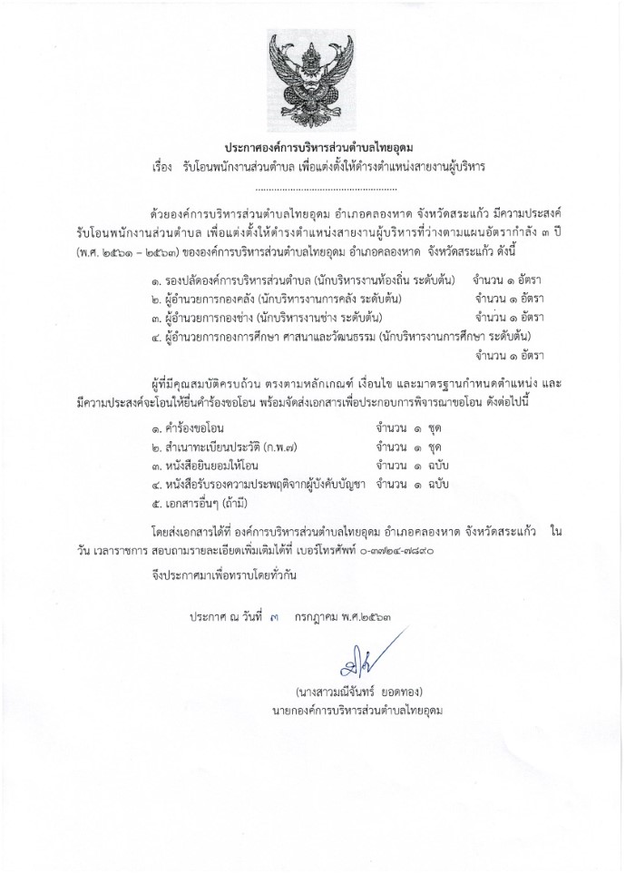 ประกาศรับโอนพนักงานส่วนตำบลสายงานผู้บริหาร
