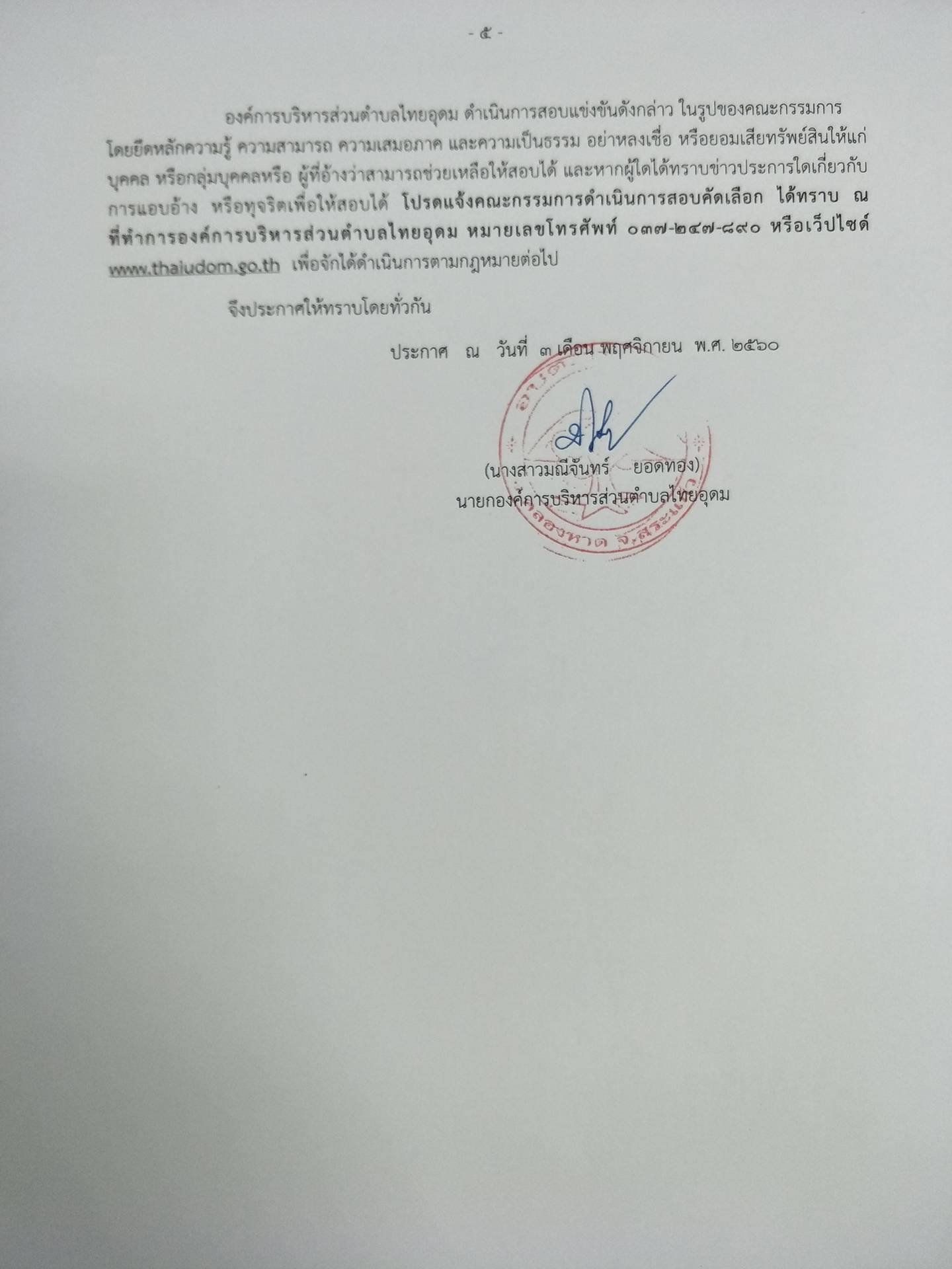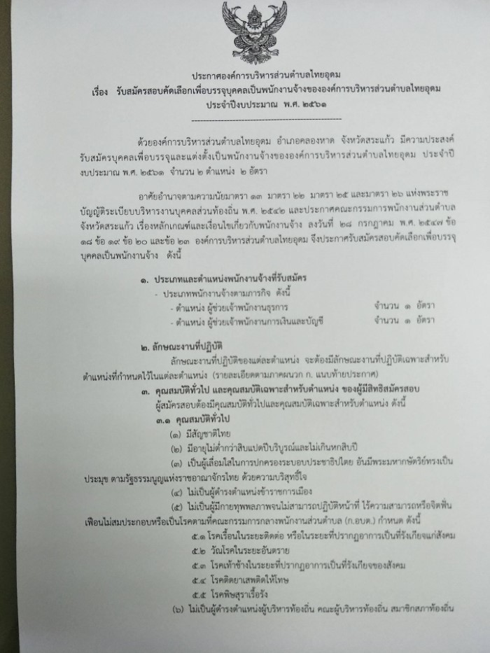 รับสมัครสอบคัดเลือกเพื่อบรรจุบุคคลเป็นพนักงานจ้างขององค์การบริหารส่วนตำบลไทยอุดม ประจำปีงบประมาณ พ.ศ. 2561