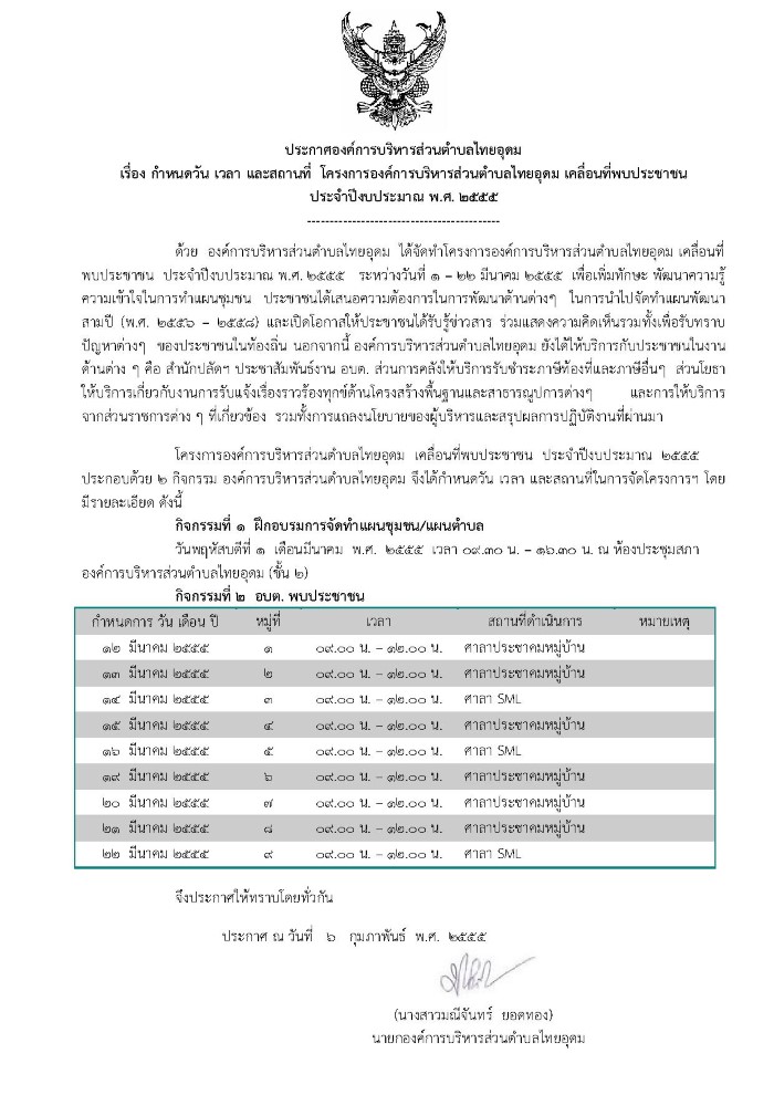 โครงการองค์การบริหารส่วนตำบลไทยอุดม เคลื่อนที่พบประชาชน ประจำปีงบประมาณ พ.ศ.๒๕๕๕