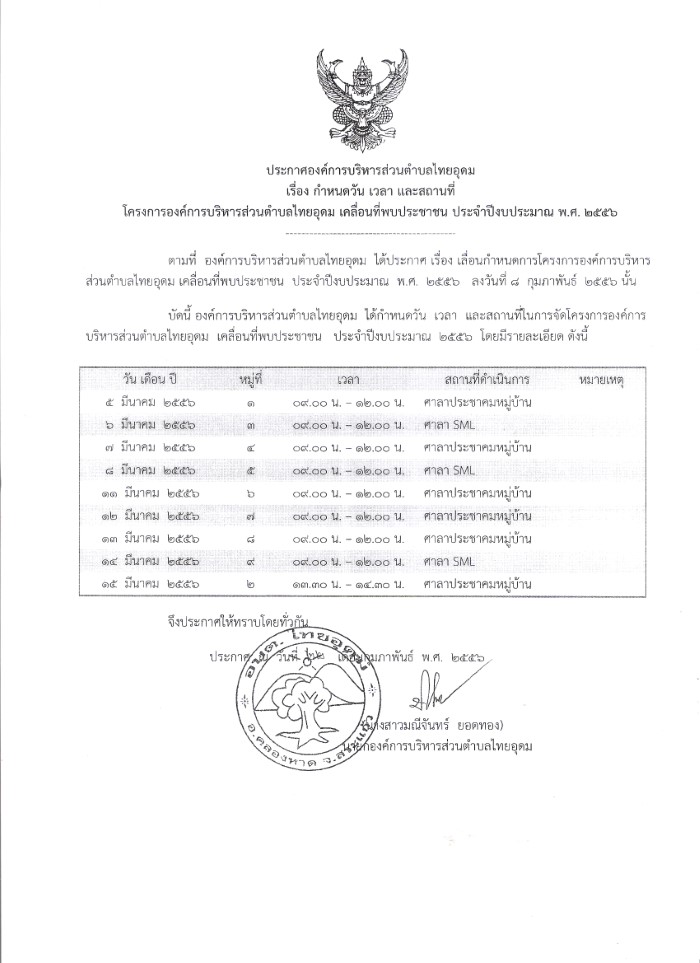 โครงการ อบต.ไทยอุดม เคลื่อนที่พบประชาชน ประจำปีงบประมาณ พ.ศ.๒๕๕๖
