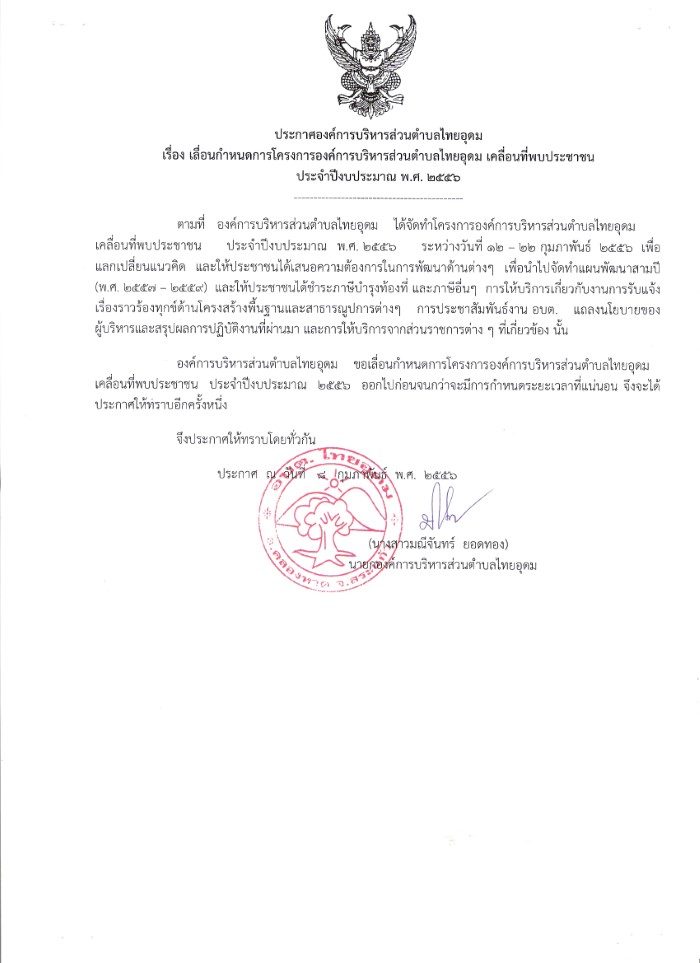 เลื่อนกำหนดการโครงการ อบต. ไทยอุดม เคลื่อนที่พบประชาชน