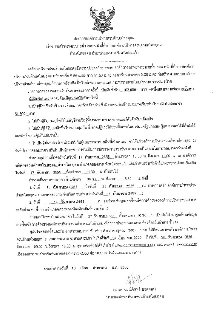 ก่อสร้างรางระบายน้ำ คสล.หน้าที่ทำการองค์การบริหารส่วนตำบลไทยอุดม