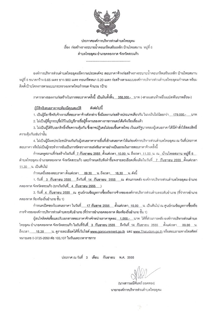 ก่อสร้างรางระบายน้ำคอนกรีตเสริมเหล็ก บ้านไทยสมาน หมู่ที่ 6