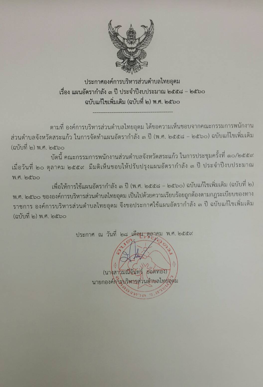ประกาศ แผนอัตรากำลัง 3 ปี ประจำปีงบประมาณ 2558 - 2560 ฉบับแก้ไขเพิ่มเติม (ฉบับที่ 2) พ.ศ.2560