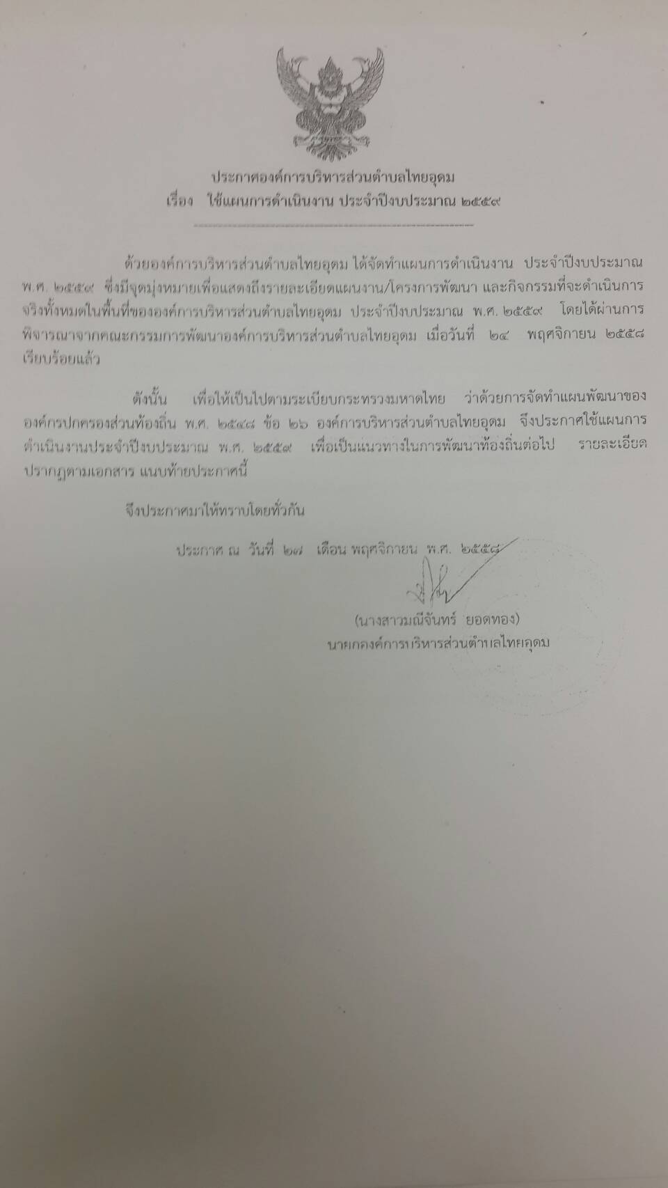 ข่าวประกาศ ประกาศการใช้แผนดำเนินงาน ประจำปีงบประมาณ 2559