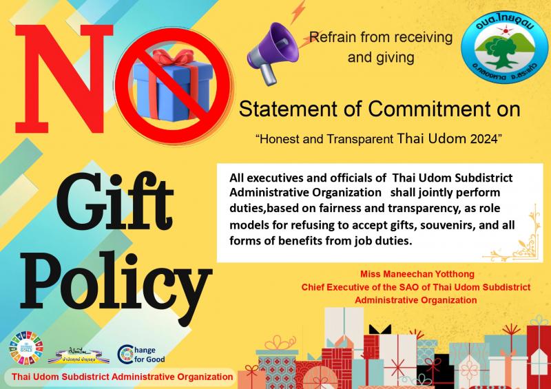 ประกาศเจตนารมณ์ สุจริต โปร่งใส อบต.ไทยอุดม ใสสะอาด ๒๕๖๗