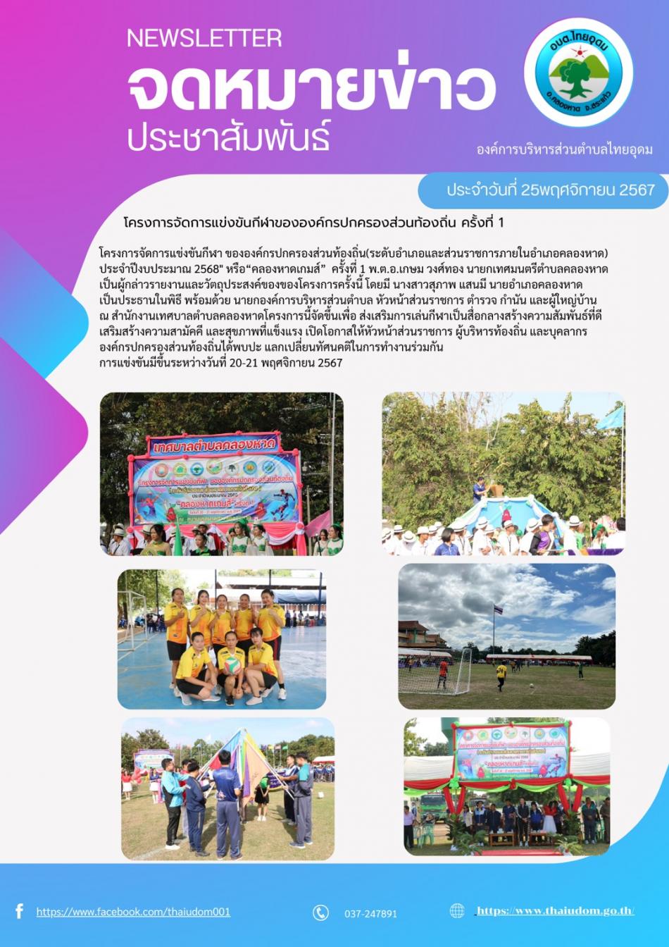 โครงการจัดการแข่งขันกีฬาขององค์กรปกครองส่วนท้องถิ่น ครั้งที่ 1 [25 พฤศจิกายน 2567]