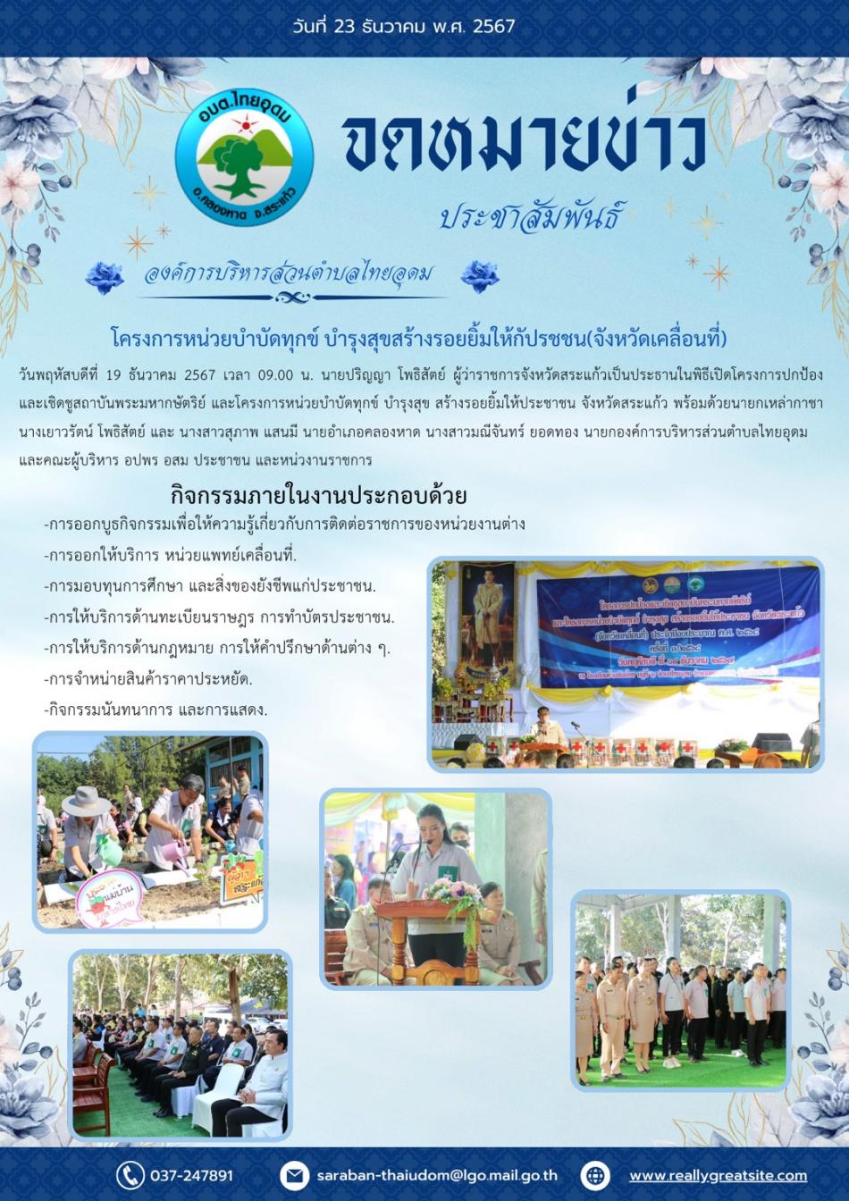 โครงการหน่วยบำบัดทุกข์ บำรุงสุขสร้างรอยยิ้มให้กัปรชชน(จังหวัดเคลื่อนที่) ครั้งที่3/2568 ประจำปีงบประมาณ พ.ศ.2568 [23 ธันวาคม 2567]