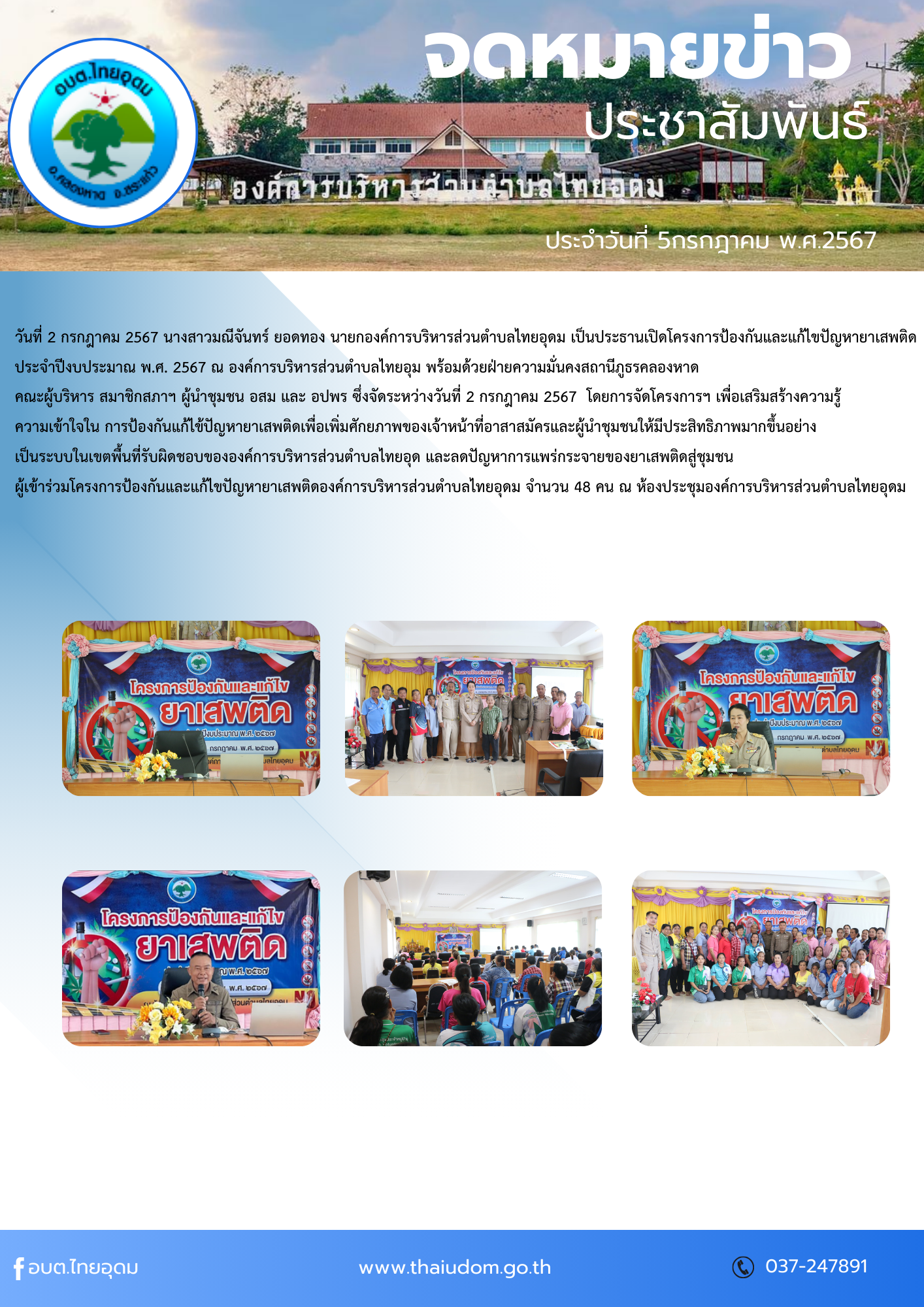 โครงการป้องกันและแก้ไขปัญหายาเสพติด ประจำปีงบประมาณ พ.ศ. 2567 [5 กรกฎาคม 2567]