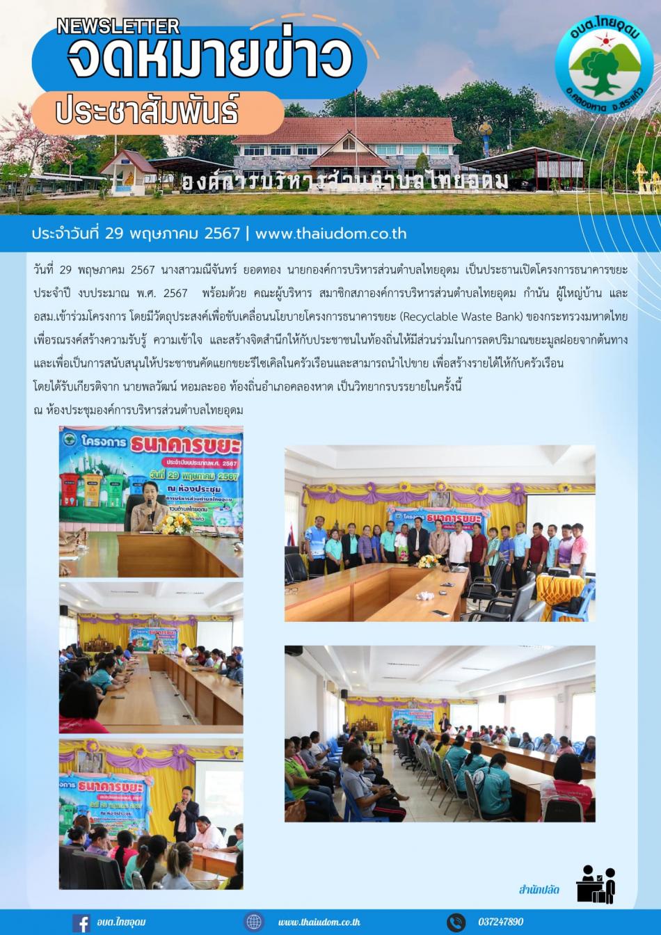 โครงการธนาคารขยะ ประจำปี งบประมาณ พ.ศ. 2567 [29 พฤษภาคม 2567]