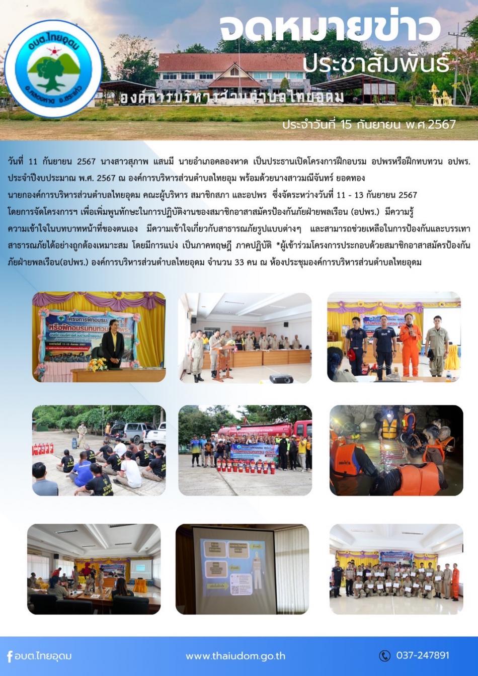 โครงการฝึกอบรม อปพรหรือฝึกทบทวน อปพรประจำปีงบประมาณ พ.ศ. 2567 [15 กันยายน 2567]